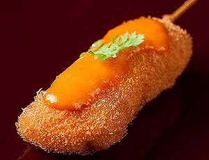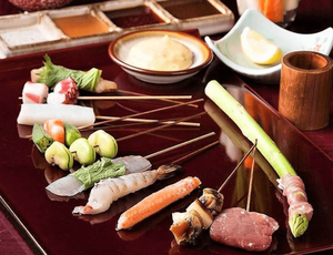 ルシーで、もたれないのが特徴。カラッと揚がった串揚げを口の中に入れると、サクサク食感を楽しめる。また、全て自家製の5種類のソースは串揚げの旨さをより引き立てる。