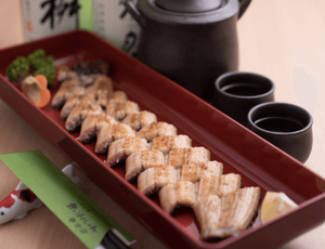 宮崎や鹿児島でとれた国産の肉厚な鰻を使用。皮はカリカリに焼かれており、身は肉厚でジューシー。シンプルに塩、ワザビで。