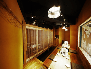 優しく照らす照明と木の温もりを感じる店内で、ゆっくり寛げる空間となっている。店内のカウンター席は、職人が目の前で調理する技を一緒に楽しむことができる。周りを気にすることがないため、一人での利用も可能だ。また座敷もあり各種宴会など、様々なシーンで利用できる。